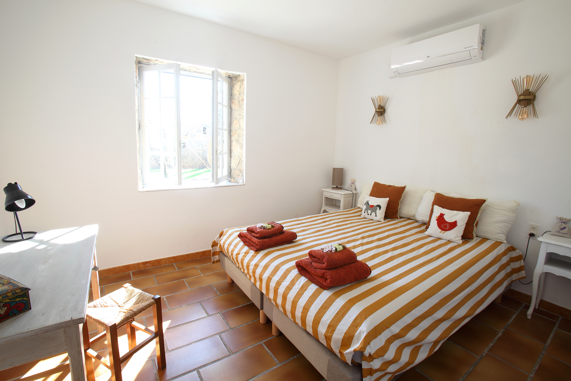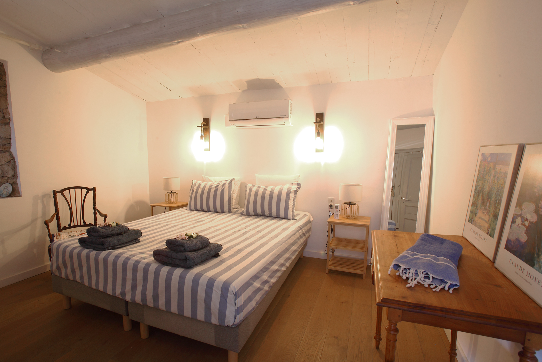 - Chambre 4 : lit queen size (160 x 200) ou deux lits simples (80 x 200).
