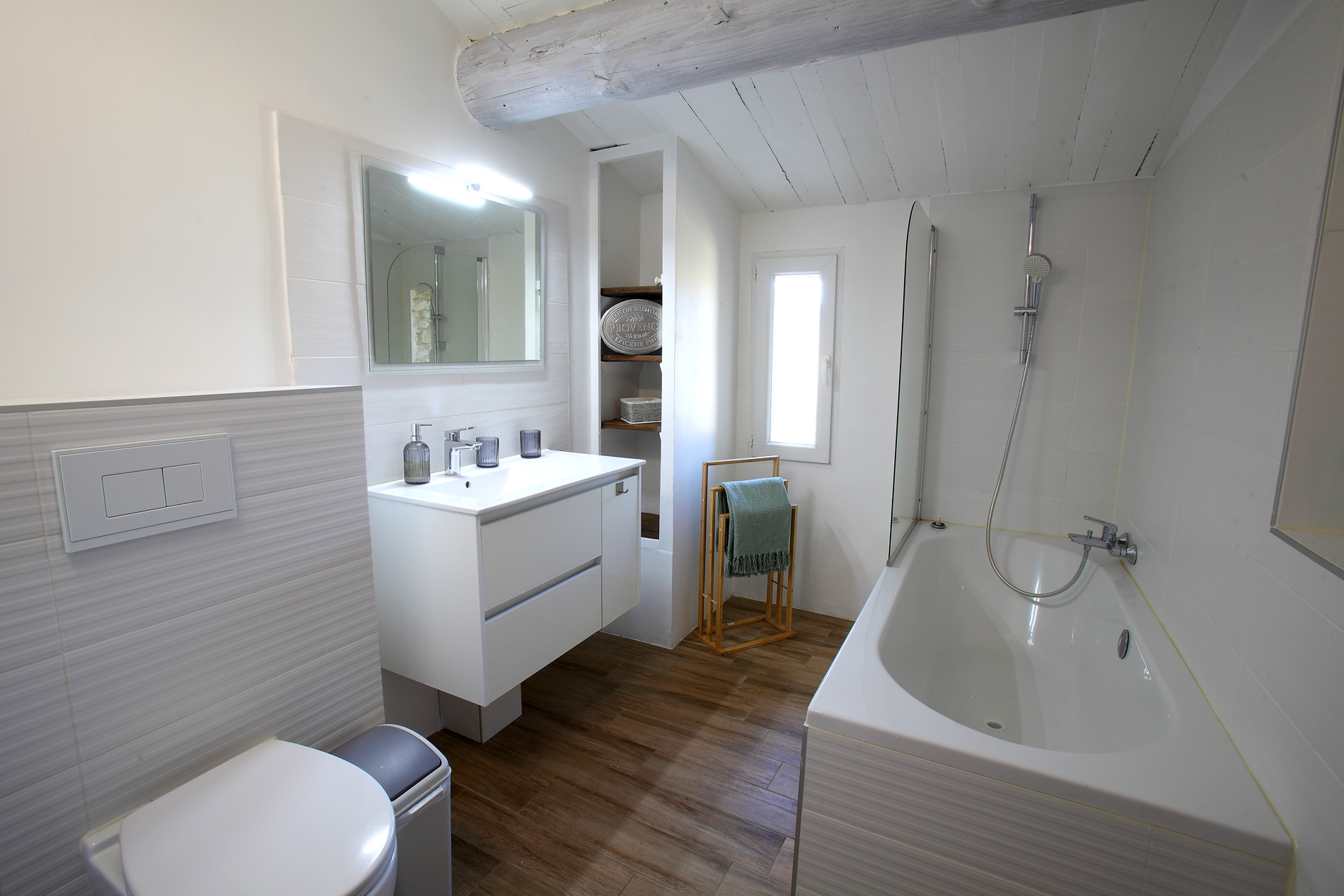 - Salle de bain partagée avec baignoire, lavabo et WC séparés pour les chambres 3 et 4.