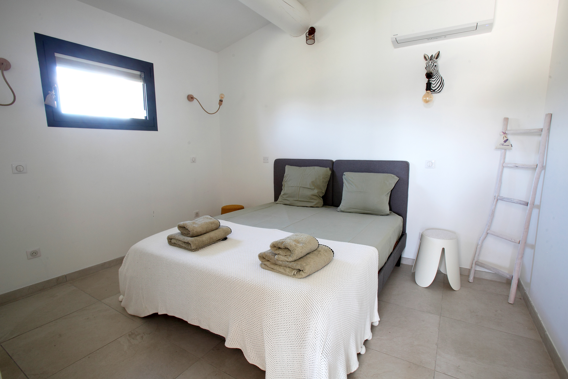 La villa dispose de quatre chambres climatisées, réparties sur deux niveaux, pouvant accueillir jusqu’à 8 adultes et 2 enfants.